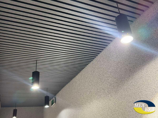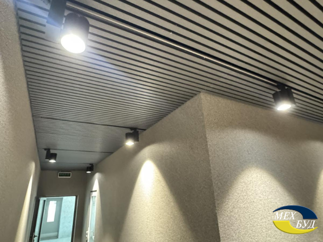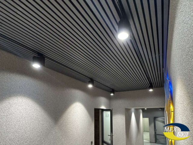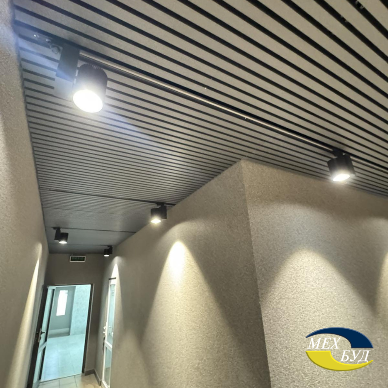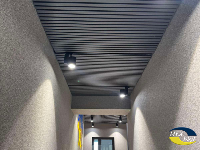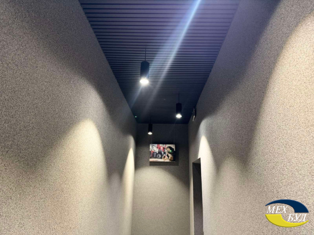 - Визуальное расширение пространства. Линейная структура потолка помогает зрительно удлинить коридоры и сделать их более просторными.