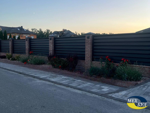 Матовое покрытие в цвете «Глубокий чёрный» придаёт ограждению сдержанную элегантность и делает его универсальным для любых архитектурных концепций. Забор выглядит солидно, дорого и гармонично вписывается в ландшафт.